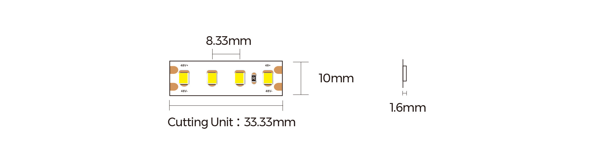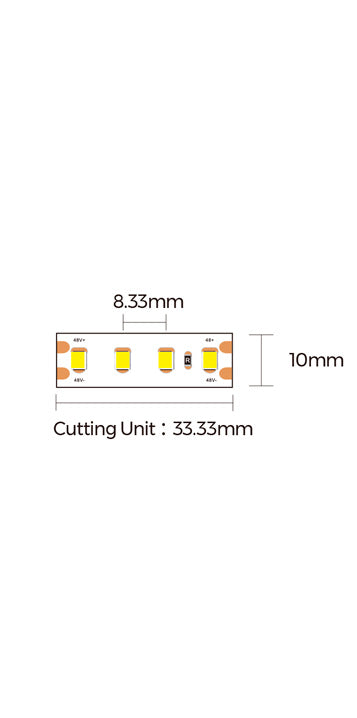 The **D8120-48V-10mm LED Strip** by COLORS® is a powerful, ultra-long LED strip designed for flexible lighting needs in large spaces. Max.length is 30 meters driven by one end strips is of lower current with 48V input,better for longer wire connection, ultra long application with less power feed,high cost efficiency for project system. With life span over 36000H Ta: -25~40°C; Tc: 75°C (max)