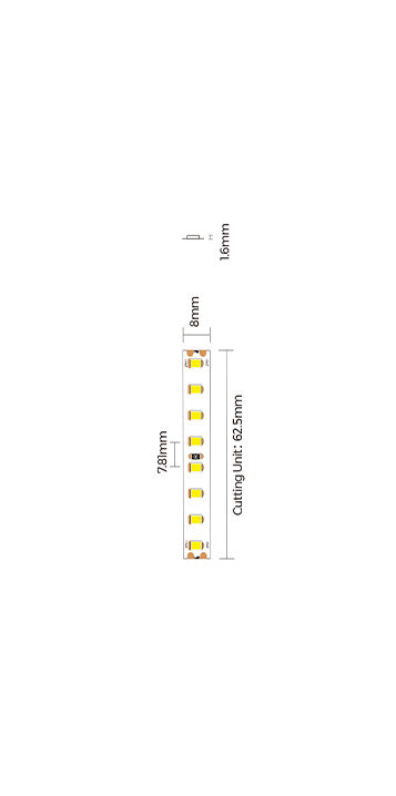 The D8128-24V-8mm LED strip from ColorsLED is a powerful solution for high quality lighting, with brightness up to 1390 lm/m and low power consumption (8.7-9.6W/m). With a wide range of color temperatures (3000K-5000K) and degrees of protection (IP20-IP67), it is suitable for both indoor and outdoor use. The high color rendering index (up to CRI 80) provides natural lighting, and the convenient 62.5mm cutting pitch allows you to adapt the tape length for any project.