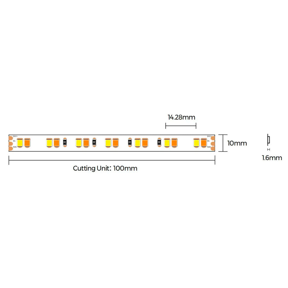 The D81402410 LED Strip from COLORS® combines efficiency and versatility, perfect for a wide range of applications. This 24V, 10mm strip features high-quality SMD2835 LEDs with a luminous flux of 1710LM/M and a CRI of 90 for vivid, true-to-life lighting. Its flexible design and long-lasting performance make it ideal for both commercial and residential projects. With a low power consumption of 17.1W/M, this strip ensures energy savings while offering reliable, consistent illumination. Available in custom lengths and various finishes, it is the perfect solution for modern lighting needs.