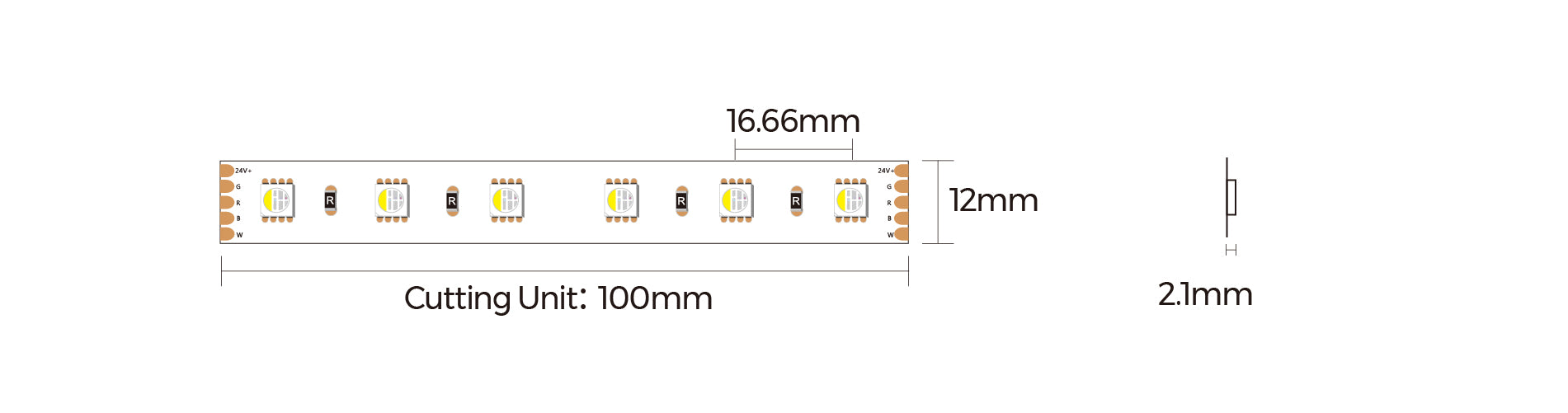 ColorsLED's D560RGBW-24V-12mm LED strip is a versatile RGB+W lighting solution with 16.8-19.2W/m power and up to 700 lm/m brightness. Available in RGB + white light color temperature options (2700K to 12000K). With IP33 protection, it is suitable for both indoor and outdoor applications. The cutting pitch of 100mm allows flexible adaptation of the tape to the project, while the operating temperature range of -25°C to 40°C guarantees reliability in all conditions.
