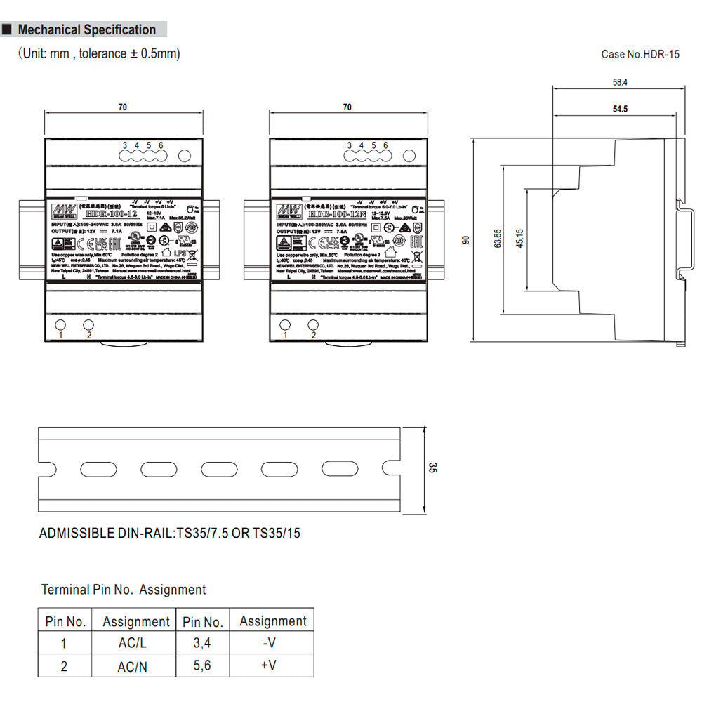 HDR-100 is one economical ultra slim 100W DIN rail power supply series, adapt to be installed on TS-35/7.5 or TS-35/15 mounting rails. The body is designed 70mm (2SU) in width, which allows space saving inside the cabinets. The entire series adopts the full range AC input from 85VAC to 264VAC(277VAC operational) and conforms to BS EN/EN61000-3-2, the norm the European Union regulates for harmonic current. HDR-60 is designed with plastic housing that it can effectively prevent user from electric hazards. With working efficiency up to 90%, the entire series can operate at the ambient temperature between -30°C and 70°C under air convection. The complete protection functions and relevant certificates for home automations and industrial control apparatus (IEC62368-1, UL508,UL62368-1, BS EN/EN61558-2-16) make HDR-100 a very competitive power supply solution for household and industrial applications.
