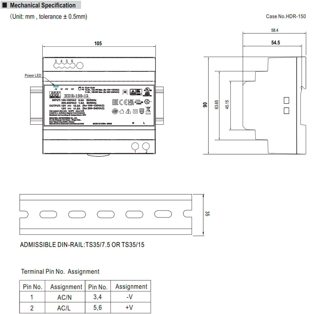 HDR-150 is one economical ultra slim 150W DIN rail power supply series, adapt to be installed on TS-35/7.5 or TS-35/15 mounting rails. The body is designed 105mm (2SU) in width, which allows space saving inside the cabinets. The entire series adopts the full range AC input from 85VAC to 264VAC(277VAC operational) and conforms to BS EN/EN61000-3-2, the norm the European Union regulates for harmonic current. HDR-60 is designed with plastic housing that it can effectively prevent user from electric hazards. With working efficiency up to 90%, the entire series can operate at the ambient temperature between -30°C and 70°C under air convection. The complete protection functions and relevant certificates for home automations and industrial control apparatus (IEC62368-1, UL508,UL62368-1, BS EN/EN61558-2-16) make HDR-150 a very competitive power supply solution for household and industrial applications.