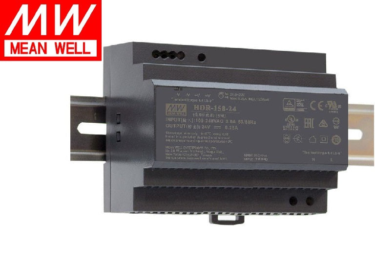 Mean Well HDR-150 Series 12, 24 and 48 volt DIN rail mount power supplies are compact and reliable power supplies for automation, lighting control and industrial applications. These power supplies are suitable for installation in distribution boards and provide stable voltage under a variety of conditions. The HDR series from Mean Well features high efficiency, overload protection, compact size and low power consumption. The ideal choice for industrial and home applications where ease of installation and power stability are required. Order HDR units for your DIN rail and keep your systems running smoothly!