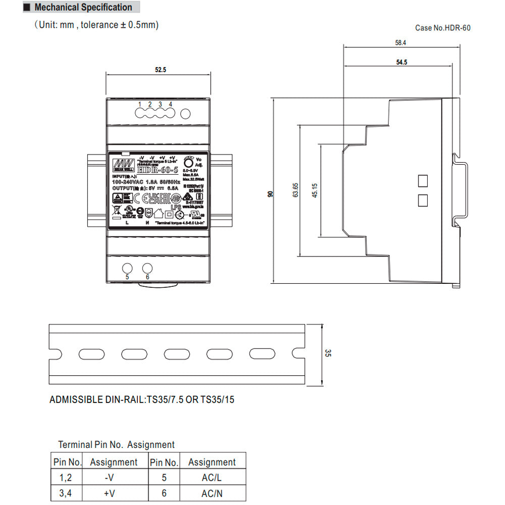 HDR-60 is one economical ultra slim 60W DIN rail power supply series, adapt to be installed on TS-35/7.5 or TS-35/15 mounting rails. The body is designed 52.5mm (2SU) in width, which allows space saving inside the cabinets. The entire series adopts the full range AC input from 85VAC to 264VAC(277VAC operational) and conforms to BS EN/EN61000-3-2, the norm the European Union regulates for harmonic current. HDR-60 is designed with plastic housing that it can effectively prevent user from electric hazards. With working efficiency up to 90%, the entire series can operate at the ambient temperature between -30°C and 70°C under air convection. The complete protection functions and relevant certificates for home automations and industrial control apparatus (IEC62368-1, UL508,UL62368-1, BS EN/EN61558-2-16) make HDR-60 a very competitive power supply solution for household and industrial applications.