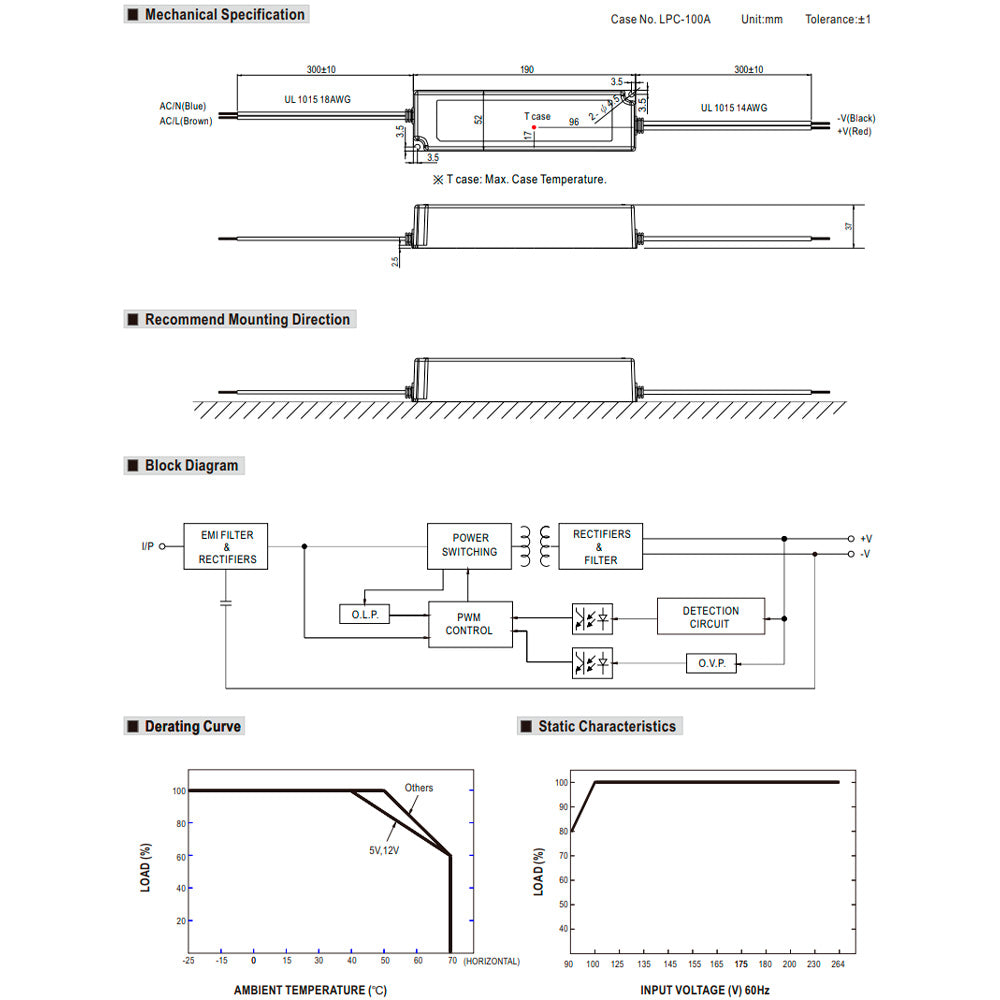 LPV-100 series is one 100W AC/DC constant voltage mode single output LED power supply. It accepts the full range input 90~264VAC and provides three models with different output voltage, 5v, 12v, 24V, respectively, that the small wattage LED applications employ the most frequently. Exploiting Class Il design (without FG pin) and adopting the 94V-0 flame retardant plastic enclosure, LPV-100 ideally fits the entry-level LED applications.