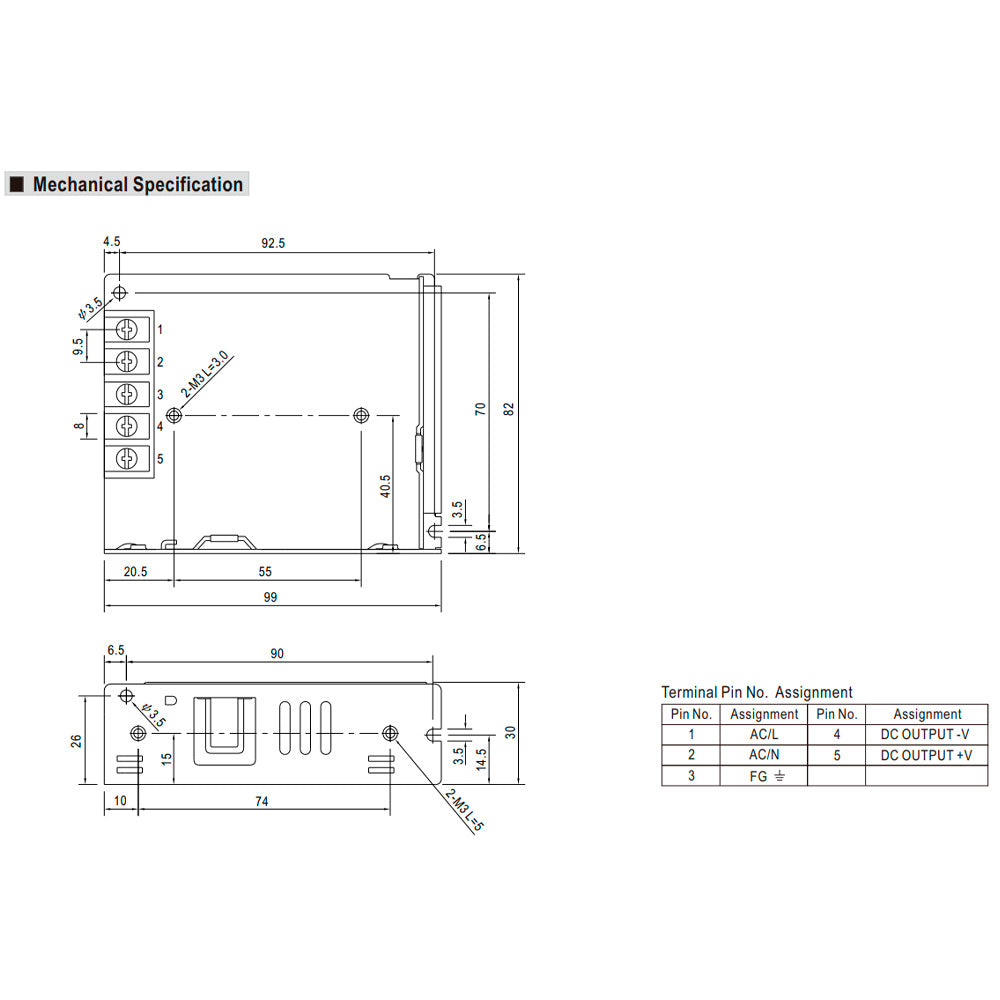 LRS-50 series is a 50W single-output enclosed type power supply with 30mm of low profile design. Adopting the full range 85-264VAC input, the entire series provides an output voltage line of 3.3V, 5V, 12V, 15V, 24V, 36V and 48V In addition to the high efficiency up to 90%, the design of metallic mesh case enhances the heat dissipation of LRS-50 that the whole series operates from -30°C through 70°C under air convection without a fan.