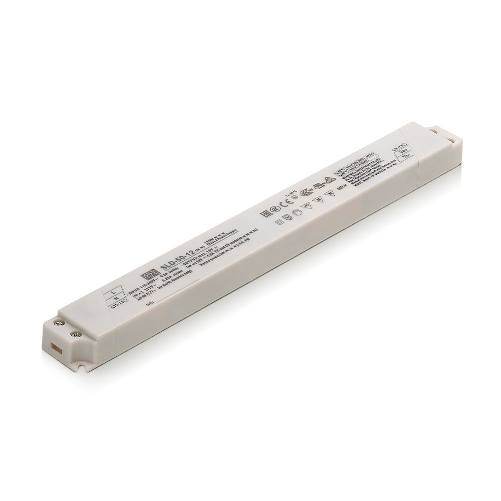 The Mean Well SLD-50 Slim Series 12 and 24 volt ultra-slim power supplies in a compact plastic housing are ideal for flush mounting and space-constrained applications. The ultra-slim design makes the SLD Slim units easy to place in hard-to-reach places, making them a great choice for powering LED strips, architectural lighting and decorative lighting. These reliable and energy efficient power supplies provide stable voltage, short circuit and overload protection. The perfect combination of compactness, quality and durability! Order Mean Well SLD Slim flush mount power supplies and realize your projects with minimum effort!