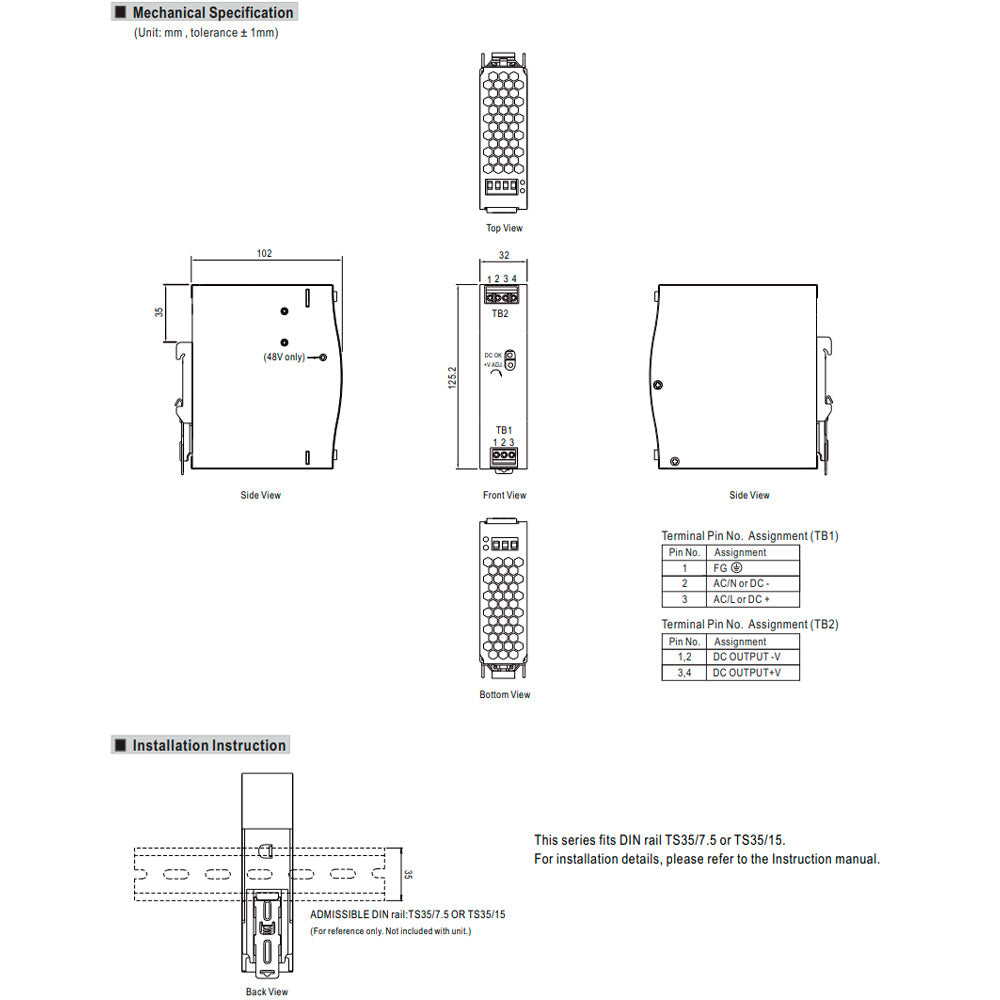 NDR-75 is one economical slim 75W Din rail power supply series, adapt to be installed on TS-35/7.5 or TS-35/15 mounting rails. The body is designed 32mm in width, which allows space saving inside the cabinets. The entire series adopts the full range AC input from 90VAC to 264 VAC and conforms to BS EN/EN61000-3-2, the norm the European Union regulates for harmonic current. NDR-75 is designed with metal housing that enhances the unit's power dissipation. With working efficiency up to 89%, the entire series can operate at the ambient temperature between -20°C and 70°C under air convection. It is equipped with constant current mode for over-load protection, fitting various inductive or capacitive applications. The complete protection functions and relevant certificates for industrial control apparatus (UL508, TUV BS EN/EN62368-1, and etc.) make NDR-75 a very competitive power supply solution for industrial applications.