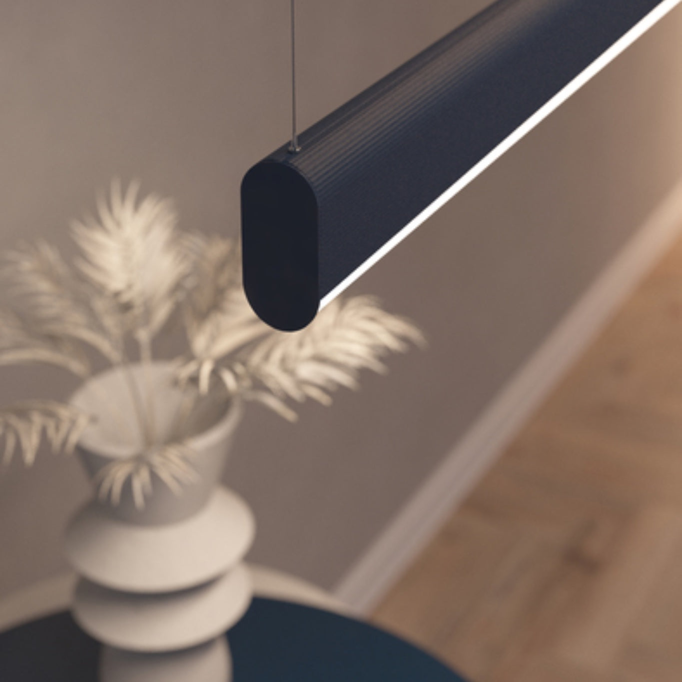 The material of the luminaire body is made of anodized aluminum, painted with powder paint with high impact resistance, LEDs - Korean-made, with high color rendering - CRI 90+. Suspension cable” type of mounting