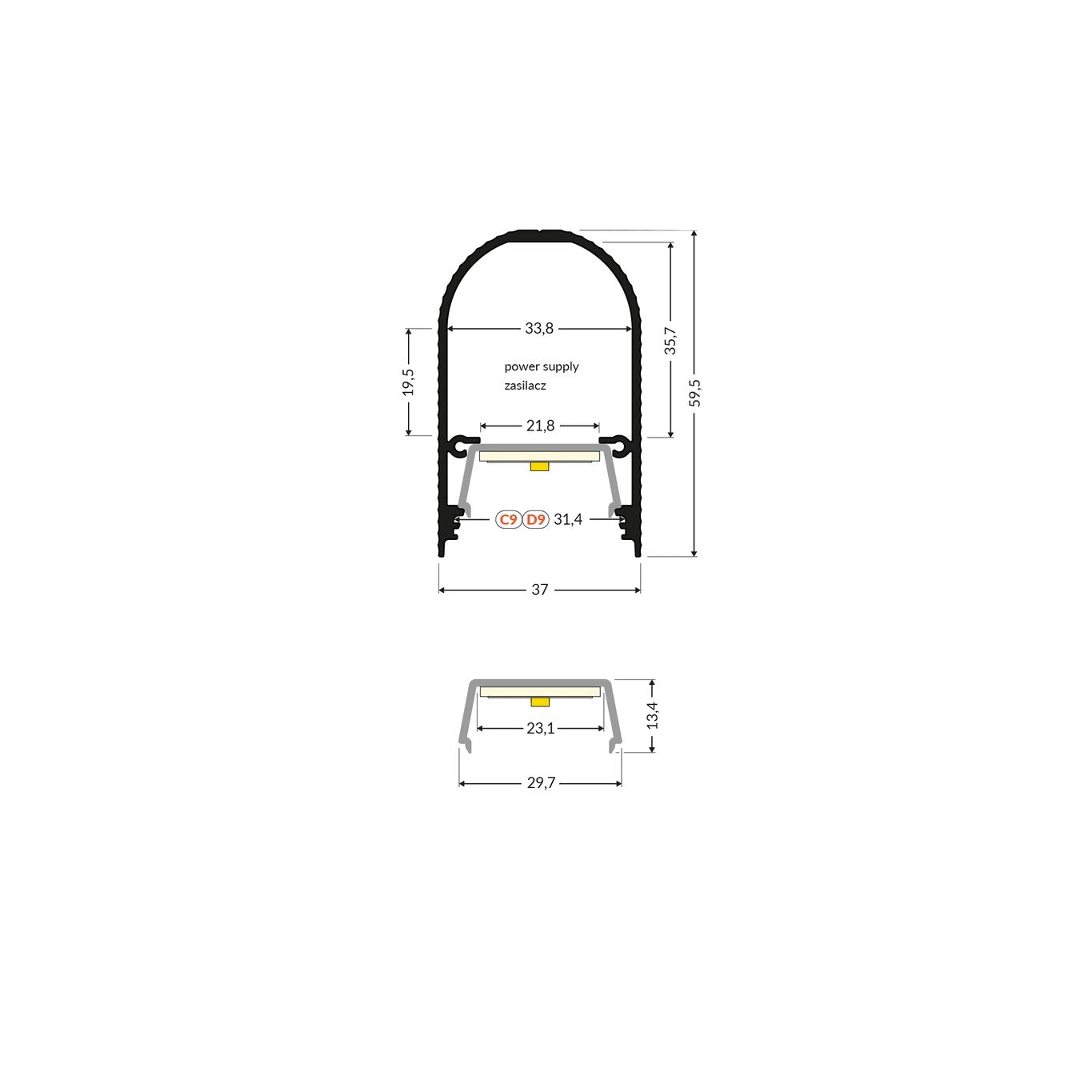 Surface-mounted linear luminaire Nami-23 (59,5×37mm) 230V